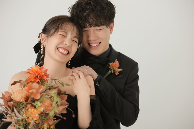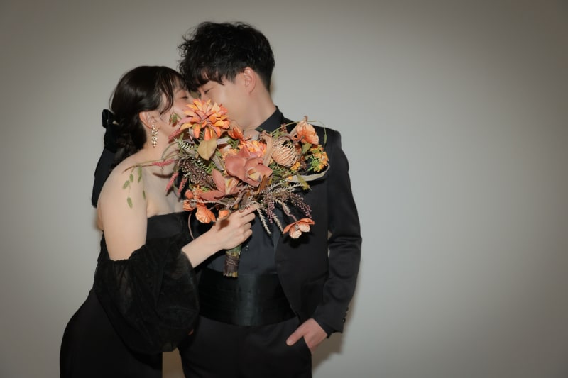 一面お花の壁が登場!新宿店ハウススタジオで撮影する洋装ウェディングフォトプラン
