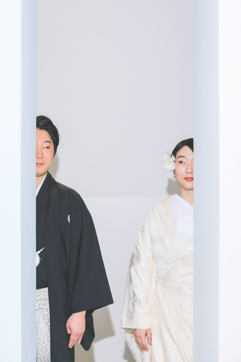新宿店の本格的な茶室スタジオで撮影する、和装の結婚写真