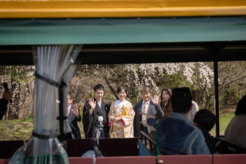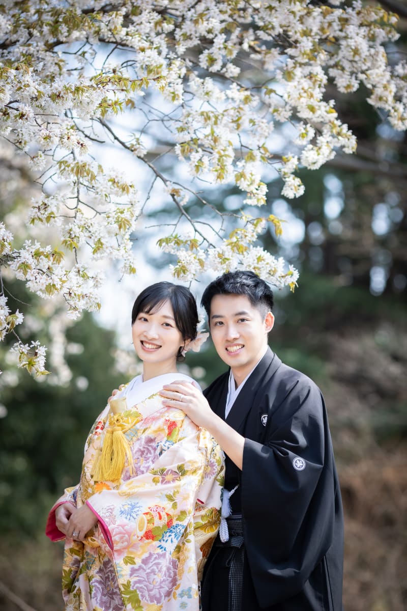 また、色鮮やかな色打掛を纏った新婦が桜の木の下でニッコリと微笑む姿も、とても印象的でした。