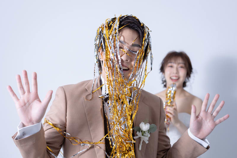 クラッカーでユーモアあふれるウェディングフォト!