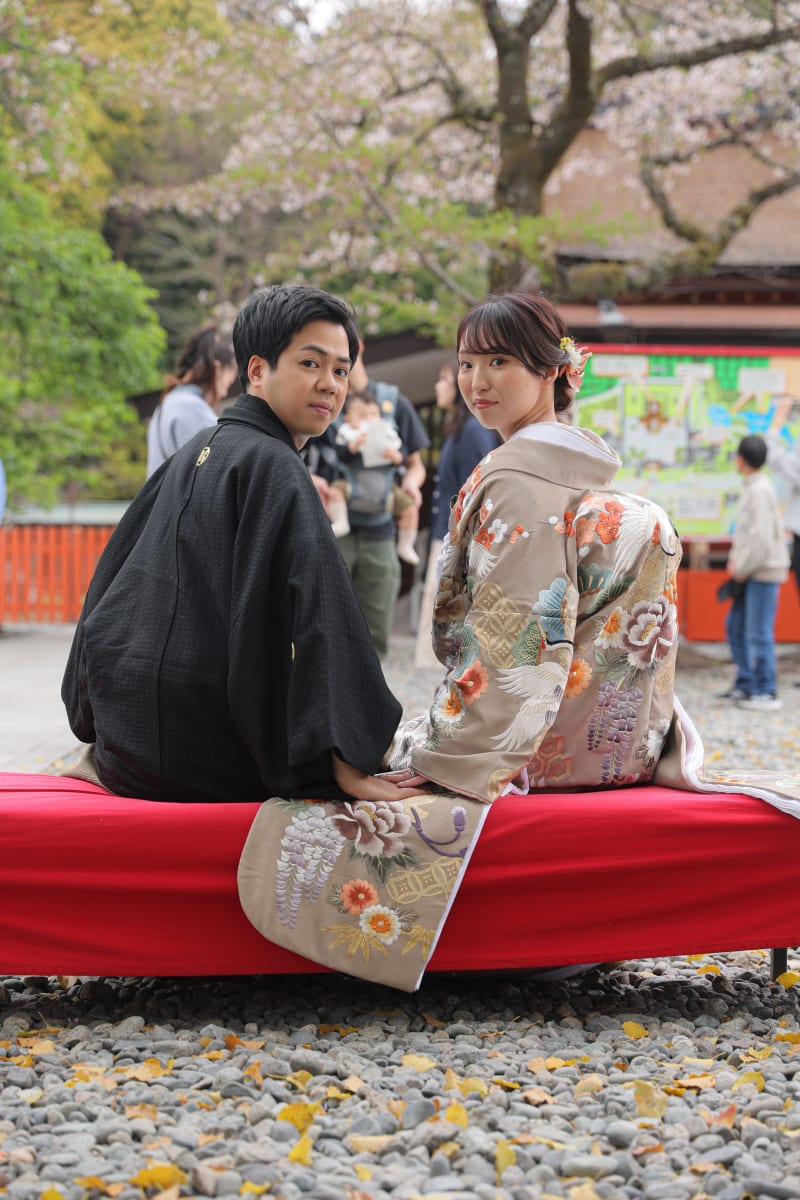 その後、浅間大社を訪れた際には、たくさんの観光客の方々に囲まれ祝福の声をいただき、和やかなムードに包まれていました。その温かい祝福はお二人の愛をさらに引き立て、終日続く幸せな撮影となりました。