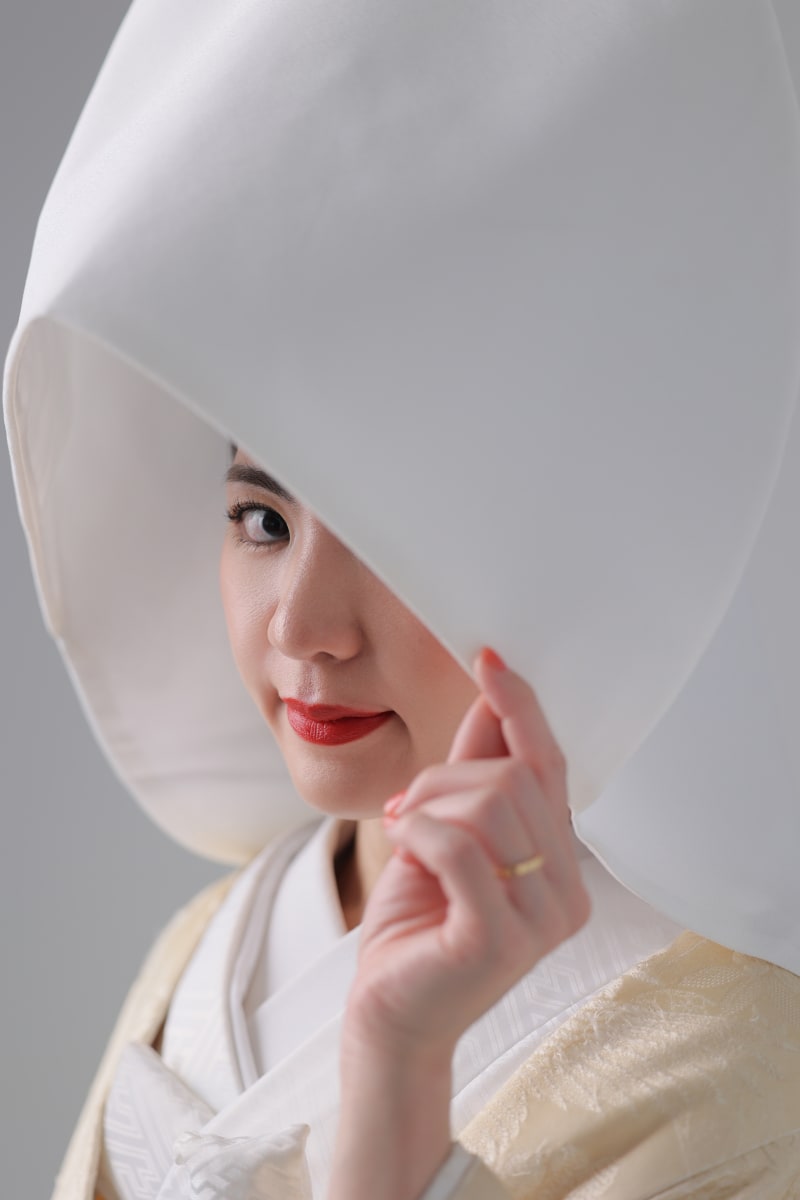 白無垢に綿帽子を纏った新婦様のソロカット。