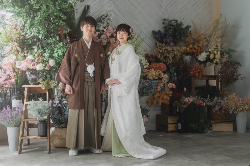 【 撮影までの流れ 】 〈 洋装 〉ご来店回数 3 回(オンライン相談会の場合は2回) 撮影相談会→ 衣装合わせ (撮影日の2週間〜1ヶ月前頃) → 撮影当日 → 商品の発送 〈 和装 〉ご来店回数 2 回(オンライン相談会の場合は1回) 撮影相談会 → 撮影当日 (衣装選びは撮影当日に行います) → 商品の発送 *衣装合わせ日と撮影日は、撮影相談会がお済みのお客様より順次ご案内となります。 撮影にあたりまして、一度ご来店もしくはオンラインにて撮影相談会へのご参加が必要となります。撮影イメージなどを詳しくお伺いし、弊社でお手伝いさせていただくことになった際には、その場で撮影日を確保させていただくという流れになります。お打ち合わせ当日は、料金プランや準備物、衣装などを1時間ほど頂戴してご案内させていただいております。