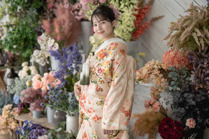 沢山のお花に囲まれた明るい雰囲気が広がり、自然の中で撮影しているかのような気持ちになります!