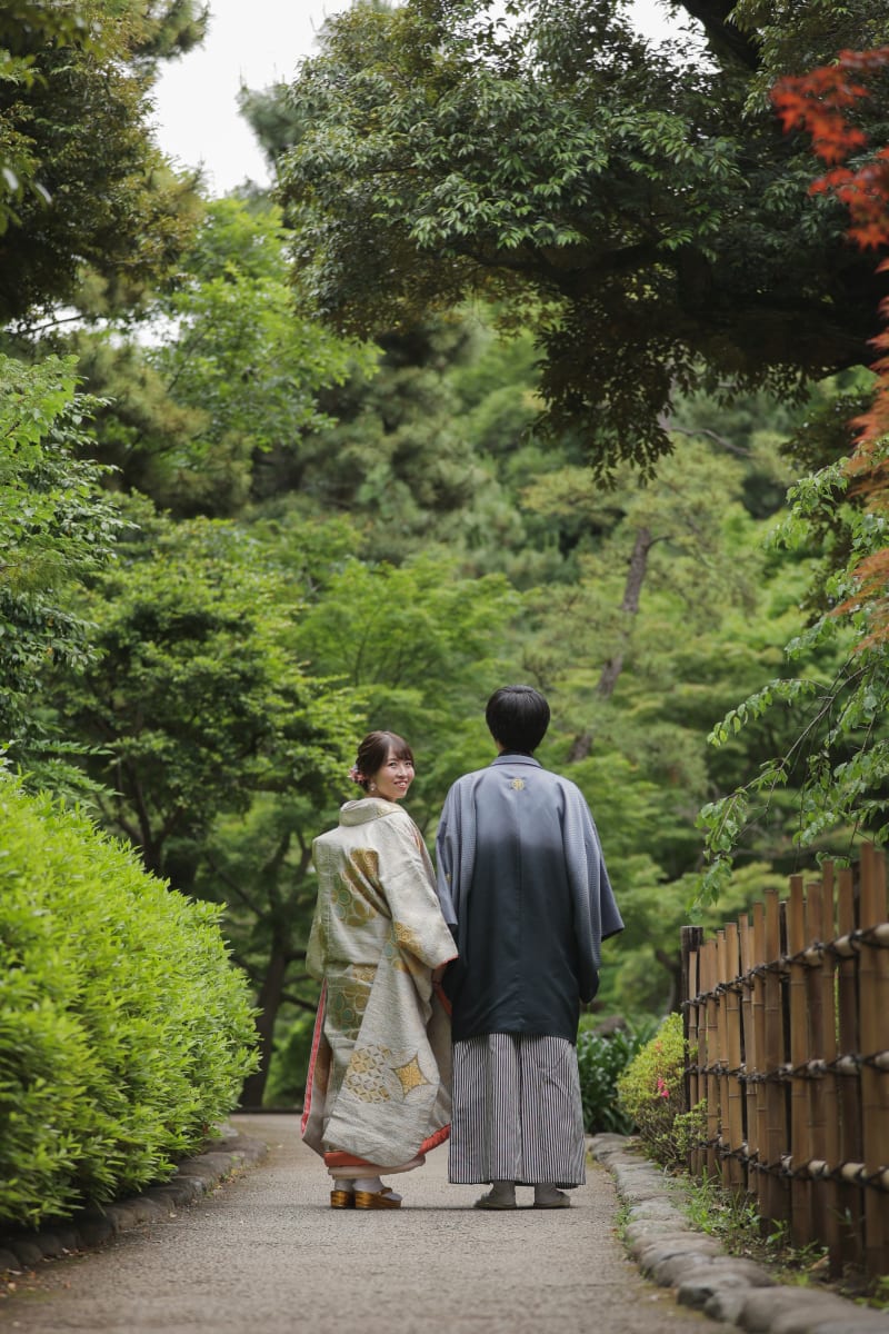 和装でのおしゃれなコーデはまさにおふたりにぴったりで、仲良しなおふたりのとてもかわいい笑顔には、見ているこちらまで思わず微笑んでしまいます。