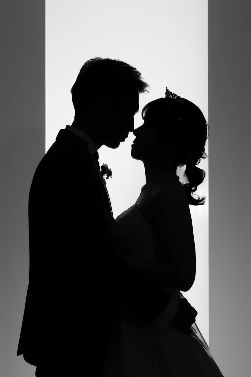 お二人からは特にシルエットや白黒の写真の希望があり、一緒にそのイメージを丁寧に作り上げました。