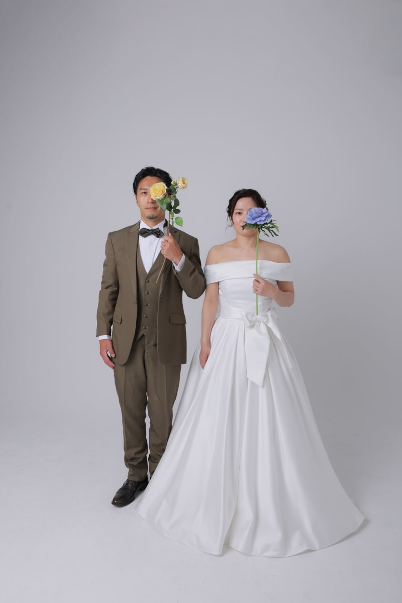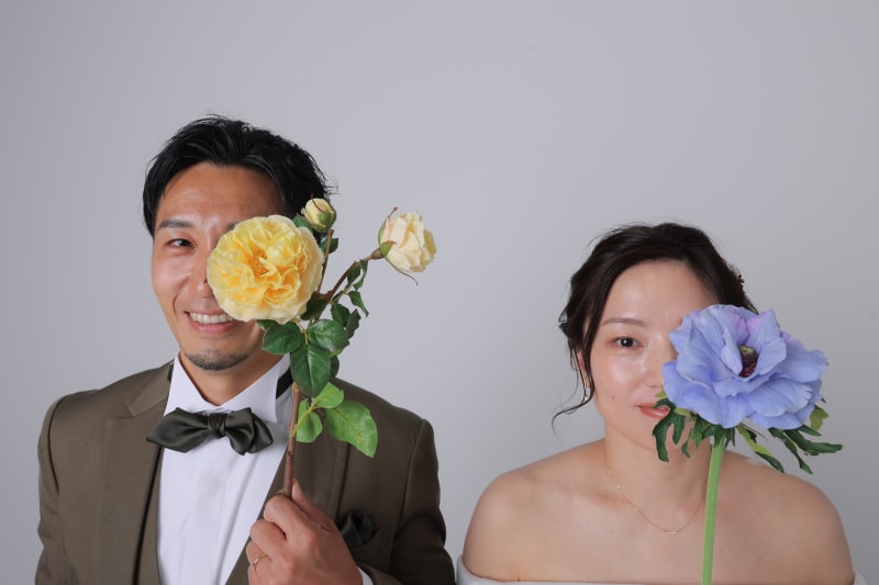 白い背景で撮影する写真は自由に撮影できるため、お二人らしさを存分に写真に残すことができます!