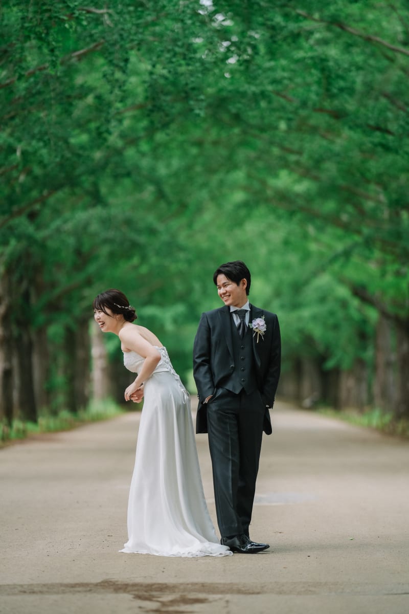まずは、綺麗な緑を背景に。笑顔が自然で素敵なお二人でした!