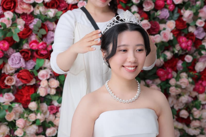 そして、もう一つの主役はティアラ。このティアラをつけたご新婦様の姿は、まるで絵本の中から飛び出してきたプリンセスのよう。