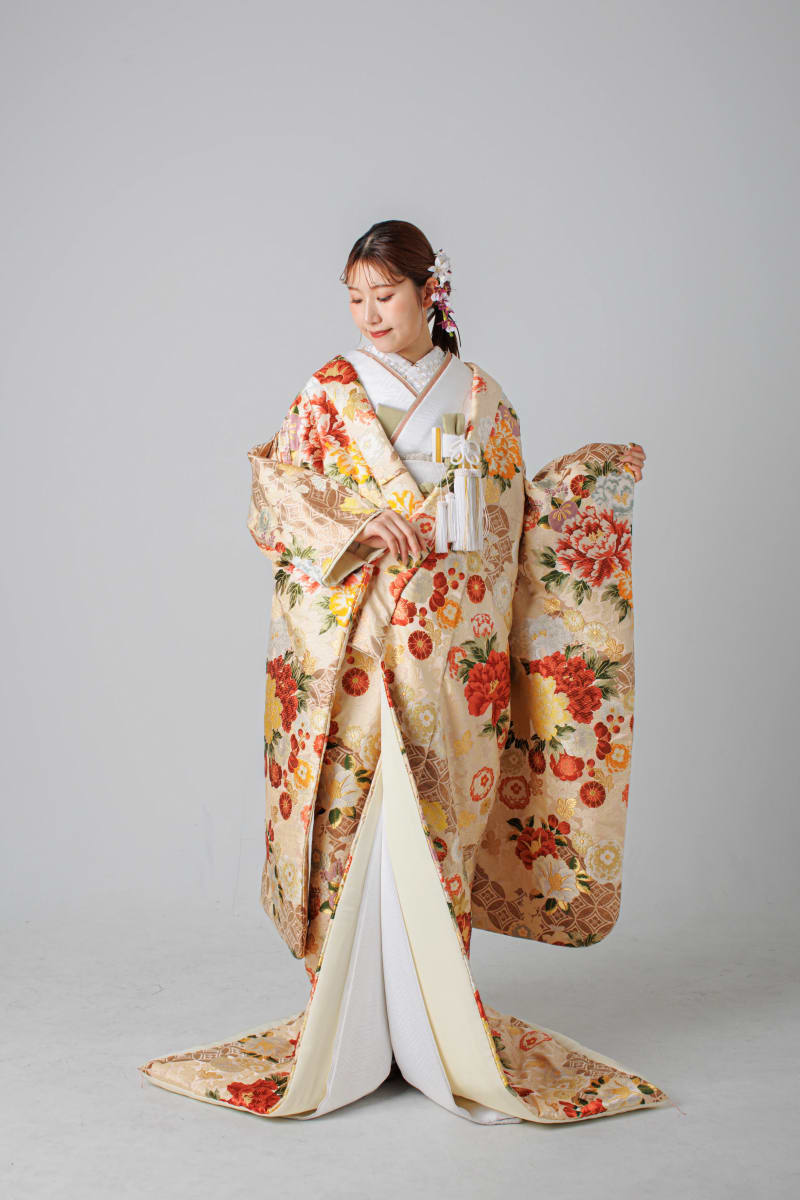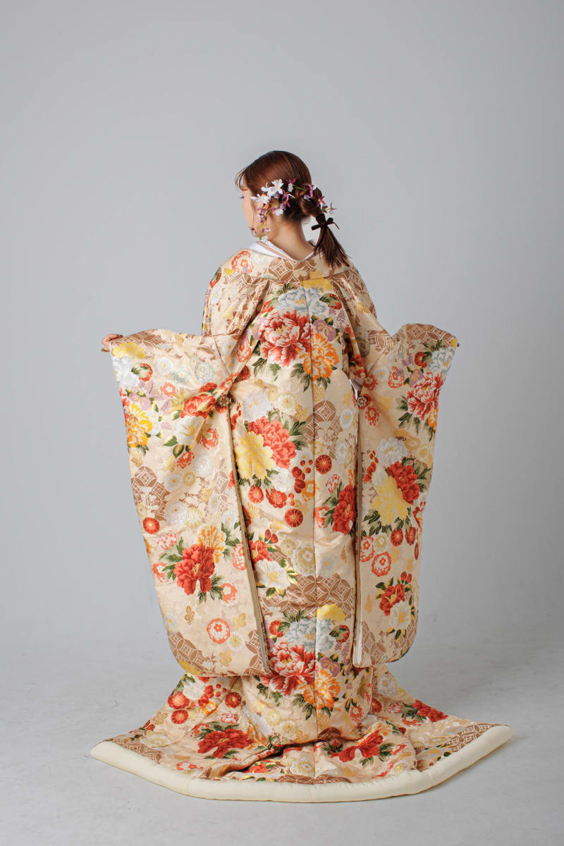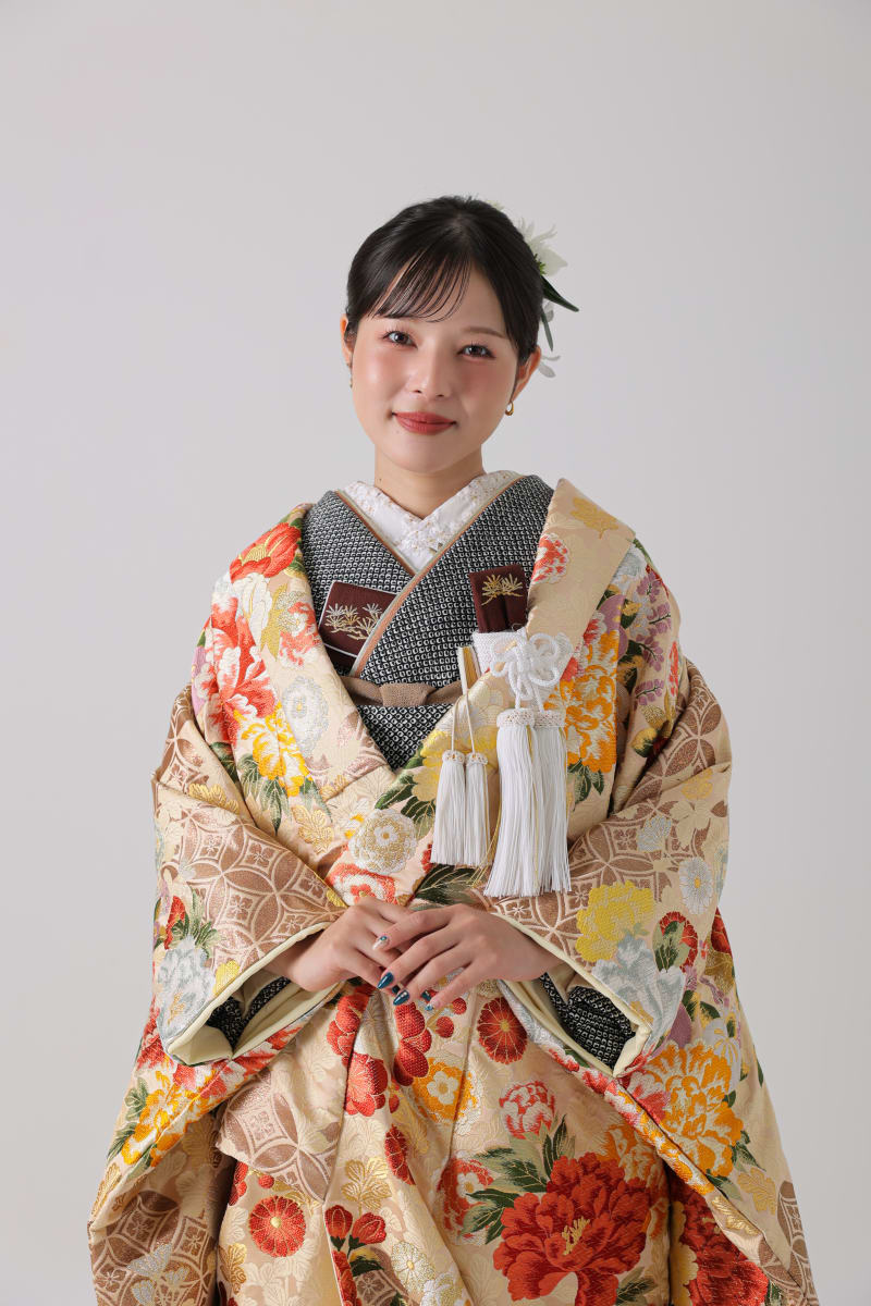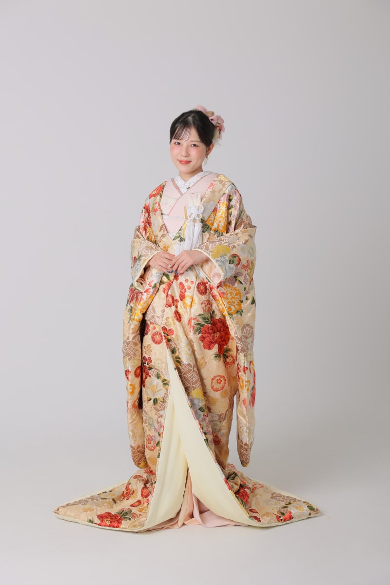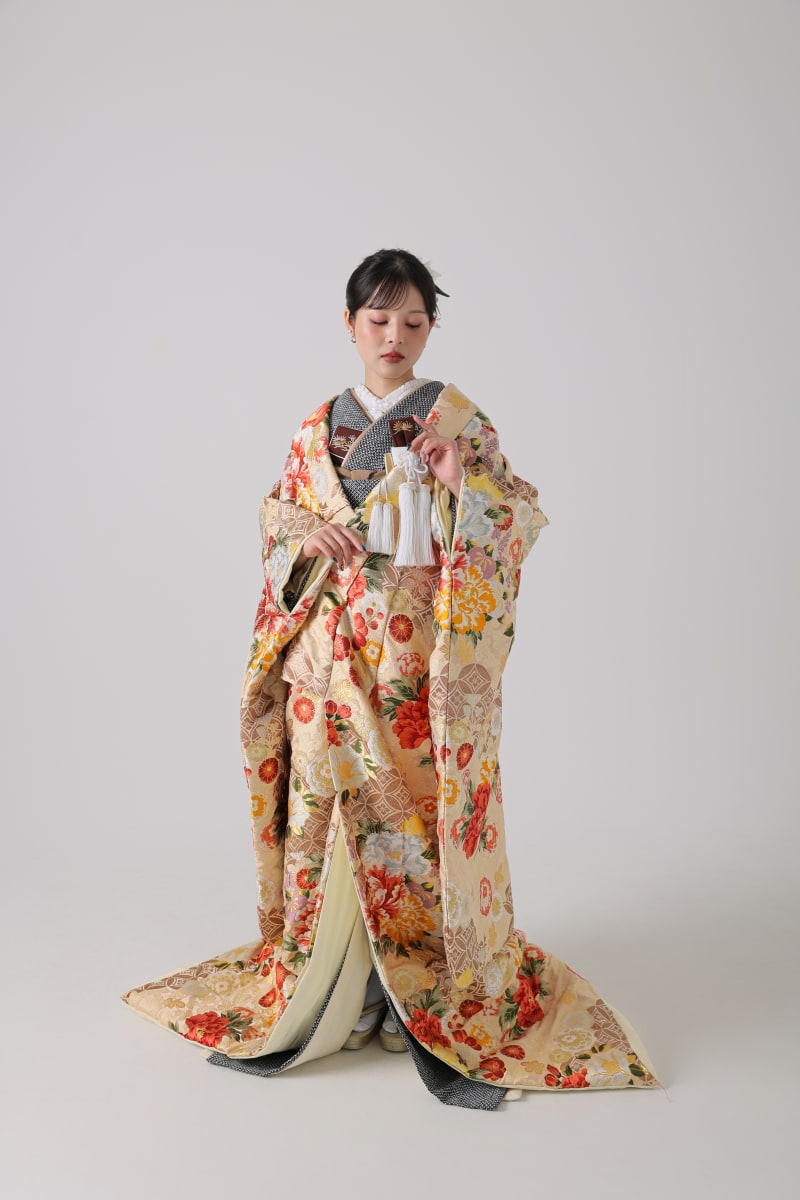 新作の色打掛は、さまざまなコーディネートで異なる魅力を楽しめる一着となっています。ぜひ、皆様もこの素晴らしい衣装で特別な日の思い出を彩ってください。