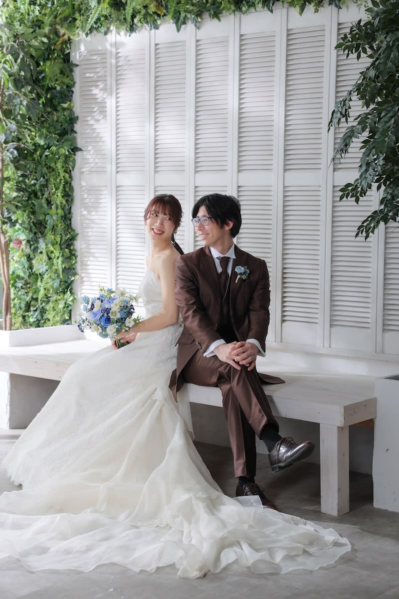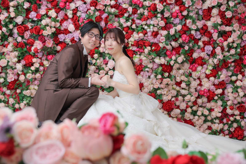 白いベンチや薔薇一面の壁でのお写真はとっても素敵です!