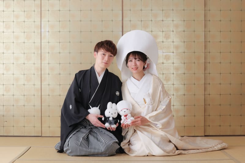 ここからは白無垢に!お二人とお揃いの衣装を着たぬいぐるみと一緒に撮りました!