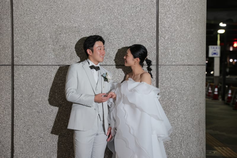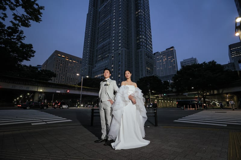 高いビルが背景ですが、お二人が映えていてとても素敵なお写真に仕上がりました!!