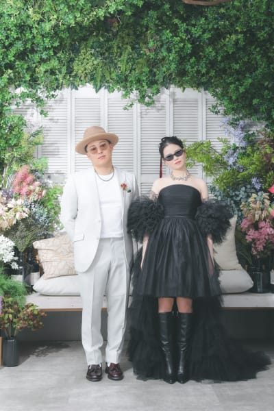 ご新郎様も持ち込みのハットやサングラスを合わせてくださり、カジュアルなスタイリングにすることで、