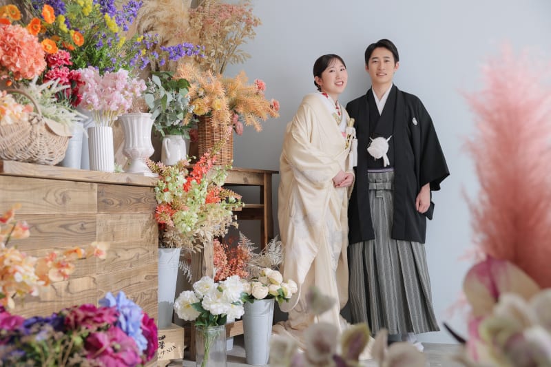 色鮮やかなお花とご新婦様の美しい白無垢が見事にマッチしていました。