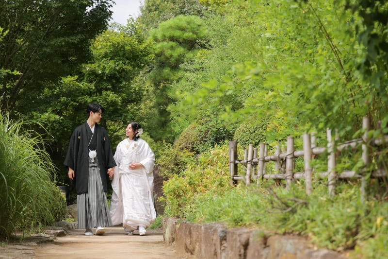 この時期ならではの鮮やかな緑が広がり、ご新婦様の白無垢の美しさを際立たせてくれました。