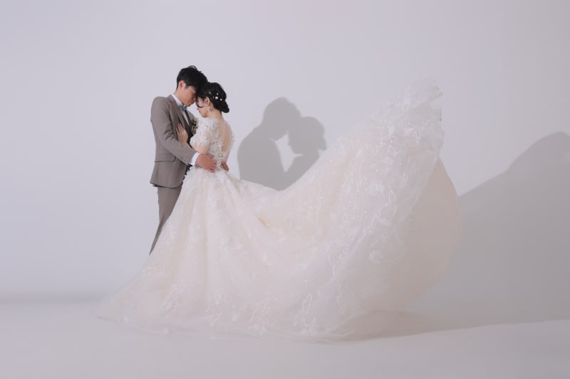 一面お花の壁が登場!新宿店ハウススタジオで撮影する洋装ウェディングフォトプラン