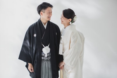 白背景で王道の白無垢と黒紋付袴での撮影でした!