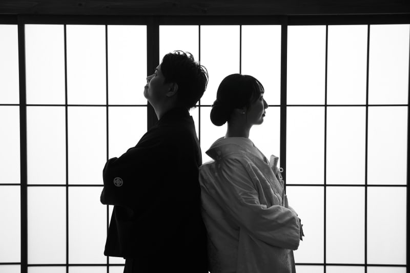 新宿店の本格的な茶室スタジオで撮影する、和装の結婚写真