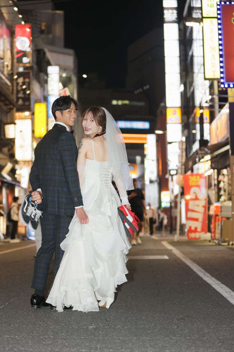 新宿の街を舞台に 夜を彩るカジュアルウェディングフォト
