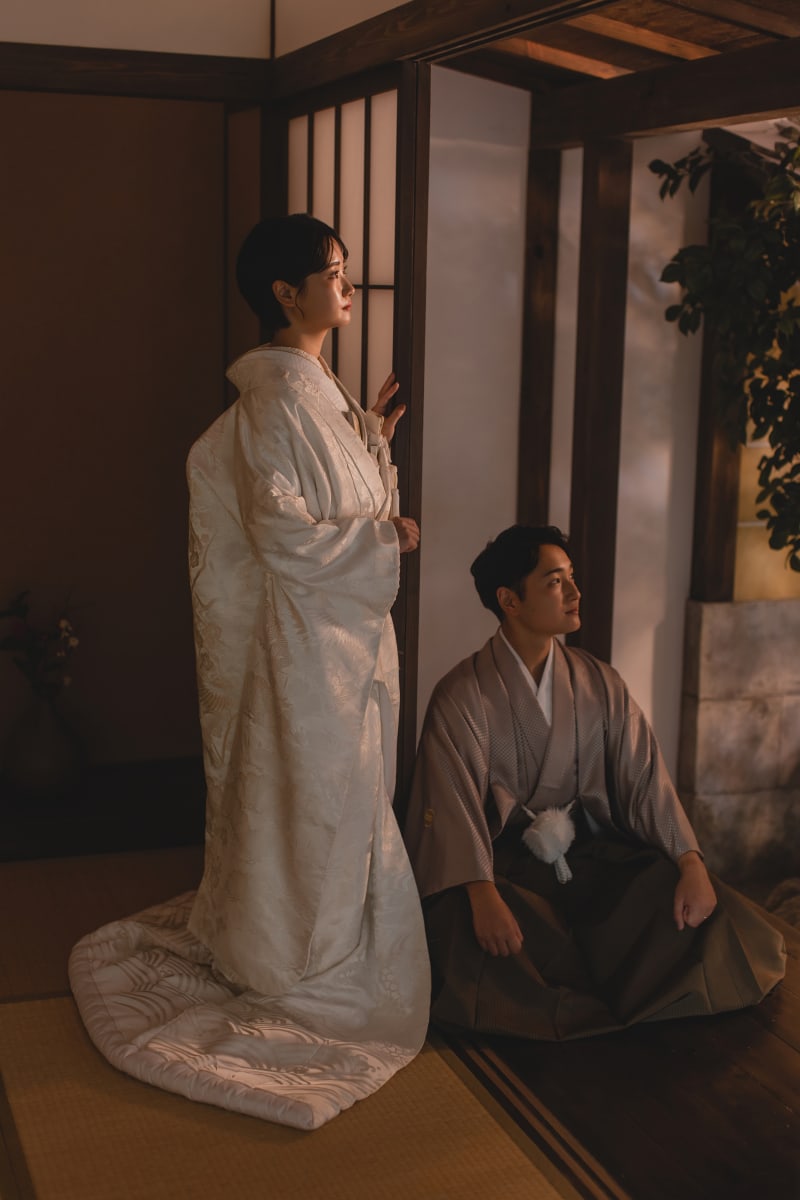 本日は夕暮れ時のように撮影できる和装屋内庭園スタジオプランのご紹介をします。