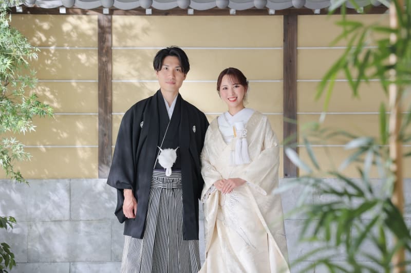 新宿店の本格的な茶室スタジオで撮影する、和装の結婚写真