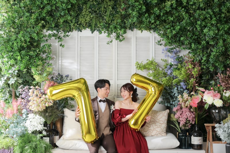 一面お花の壁が登場!新宿店ハウススタジオで撮影する洋装ウェディングフォトプラン