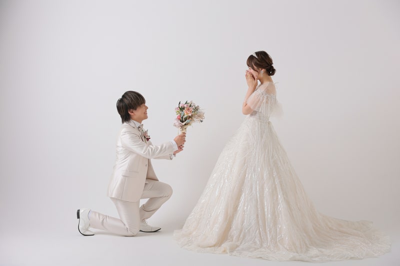 一面お花の壁が登場!新宿店ハウススタジオで撮影する洋装ウェディングフォトプラン