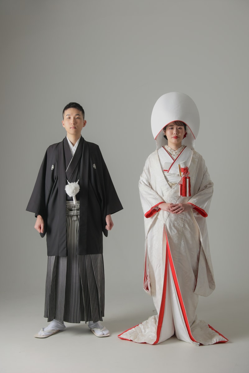 まずは和装での撮影。伝統的な衣装がとてもお似合いで、落ち着いた雰囲気を醸し出していました。正面を向いたクールな雰囲気の中にも、お二人の優しさが垣間見れるカットを撮影しました。