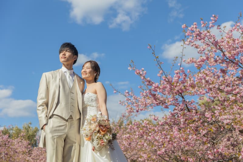 一面お花の壁が登場!新宿店ハウススタジオで撮影する洋装ウェディングフォトプラン