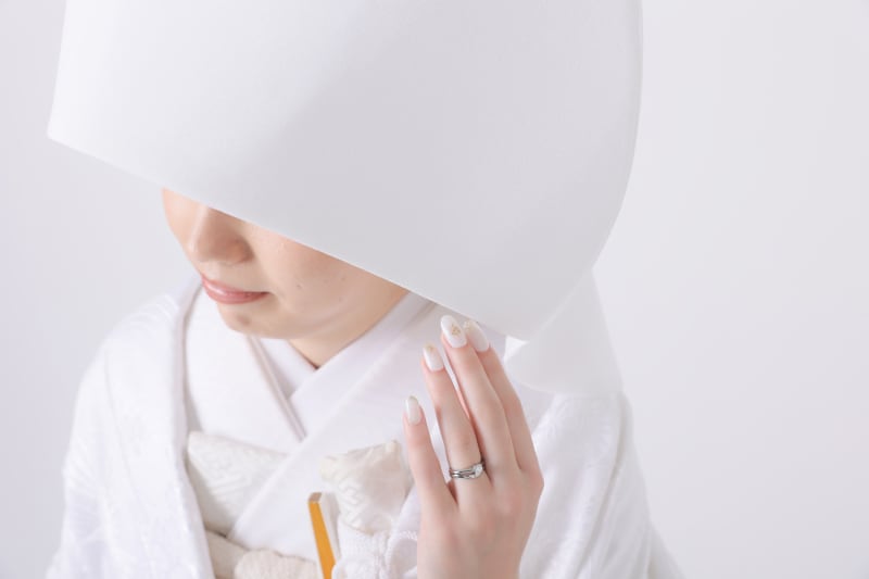 その後、シンプルで上品なスタジオに移動し、白無垢に衣装チェンジした姿は清らかさと伝統美が際立ちました。