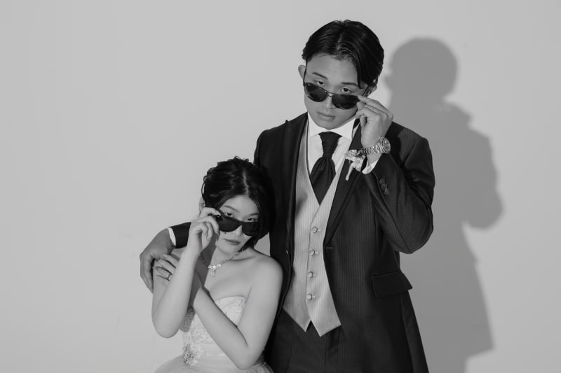 また、サングラスを使った撮影も行い、バッチリキメ顔のお二人はとてもスタイリッシュで素敵でした。