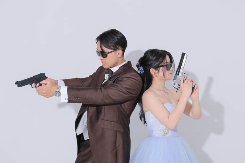 さらに、お二人が共通で好きなアイテムである「銃」を使った撮影も行いました。