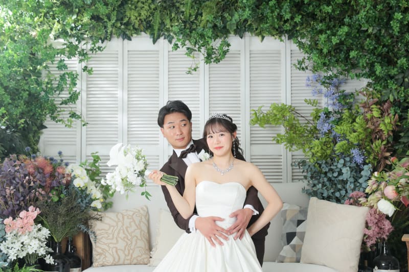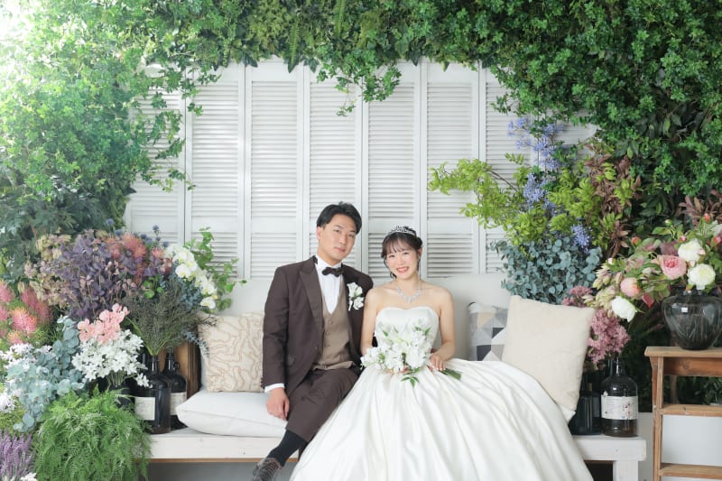 新婦様と新郎様は、洋装と和装の両方で一生に一度の写真を残したいとのご要望から、「屋内庭園スタジオ+ハウススタジオ」セットプランをお選びいただきました。