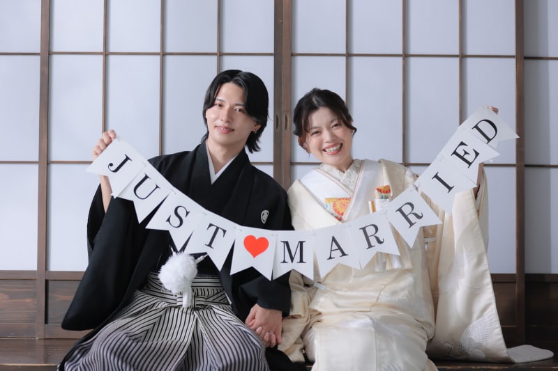 縁側に座り、お持ちいただいたガーランドを使って手も繋いでいただきました!