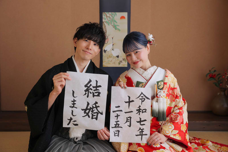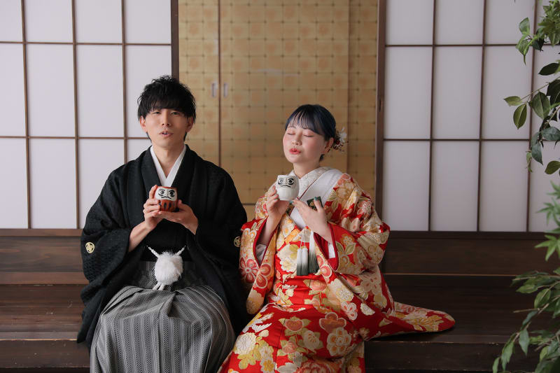 新宿店の本格的な茶室スタジオで撮影する、和装の結婚写真