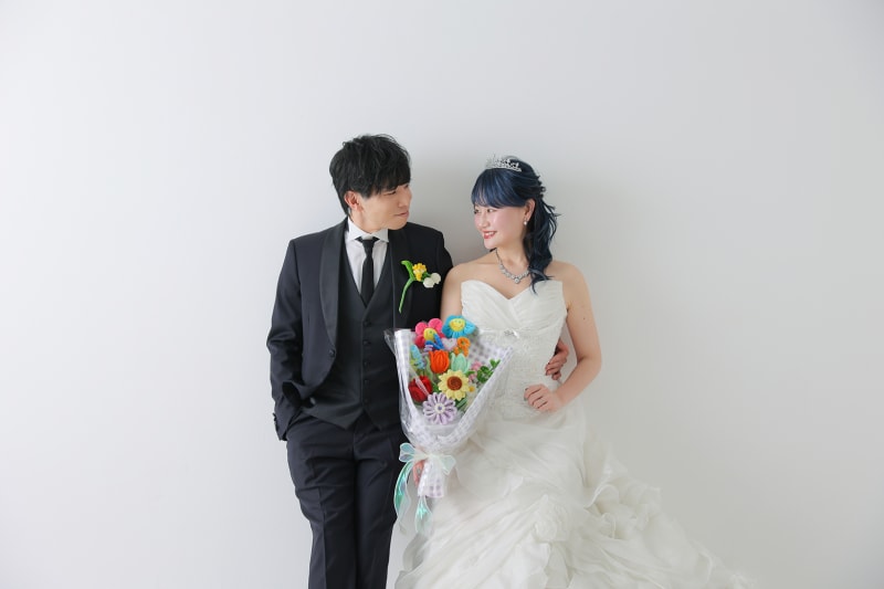 一面お花の壁が登場!新宿店ハウススタジオで撮影する洋装ウェディングフォトプラン