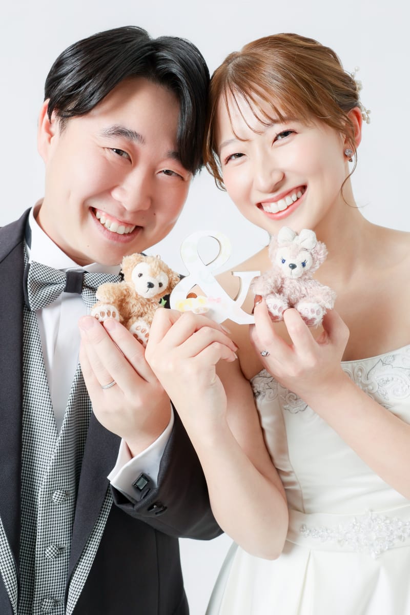 お茶室の中でぬいぐるみと同じポーズをしていただきました。 素敵なお二人の特別な日のお手伝いができたこと、心より嬉しく思います。 末長い幸せをお祈りしております!
