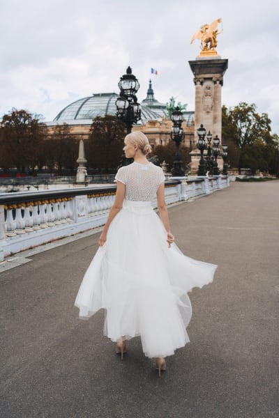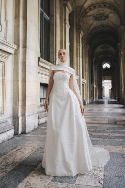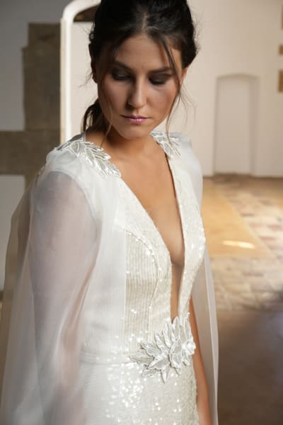動きに合わせて表情を変えるケープが、花嫁の内面の美しさまでも引き立てます。