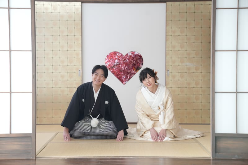 新宿店の本格的な茶室スタジオで撮影する、和装の結婚写真