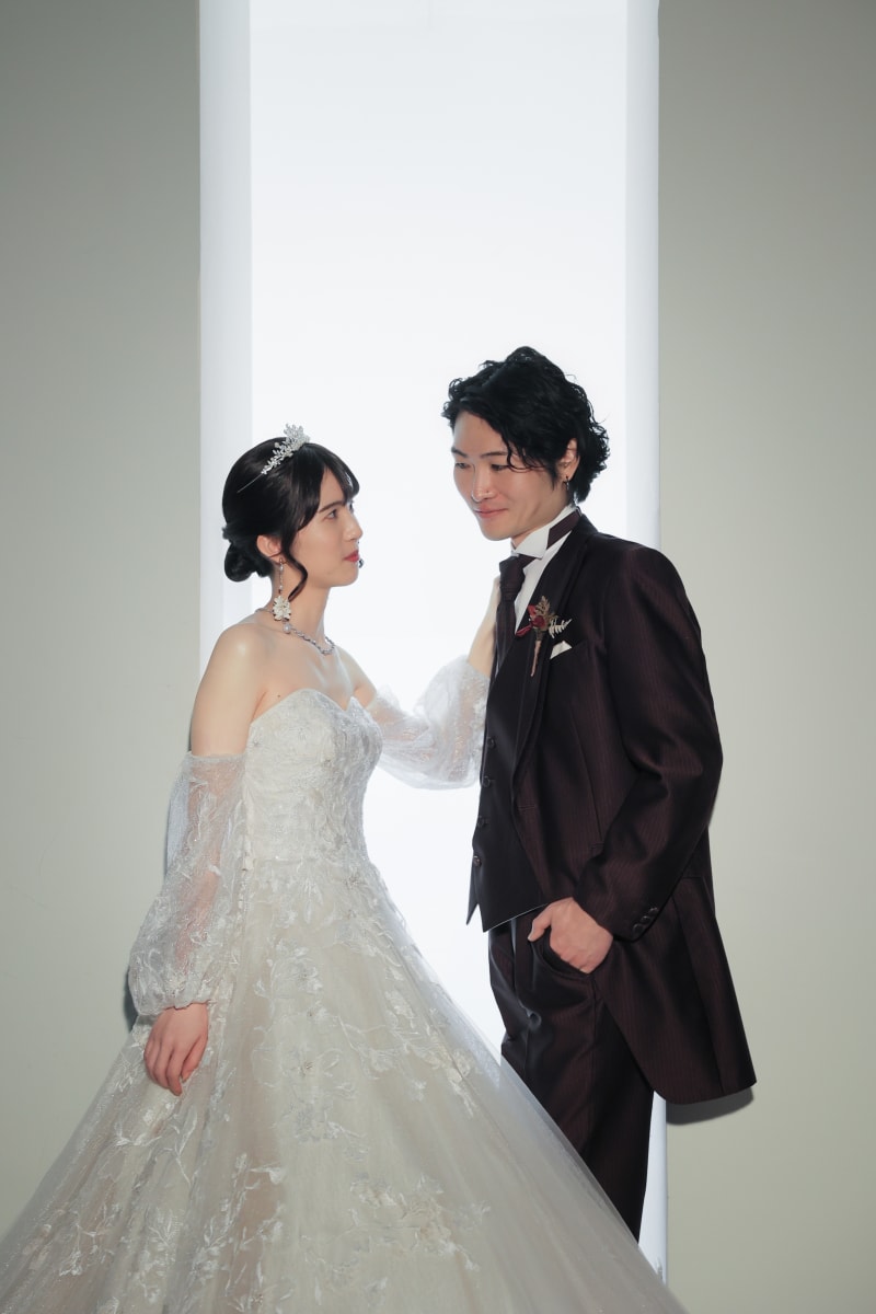 影をつけたライティングが、おふたりの凛とした表情を際立たせます。