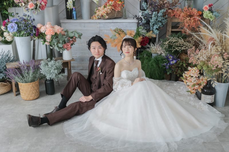 おふたりに座っていただき、ドレスの広がりが印象的な一枚になりました。