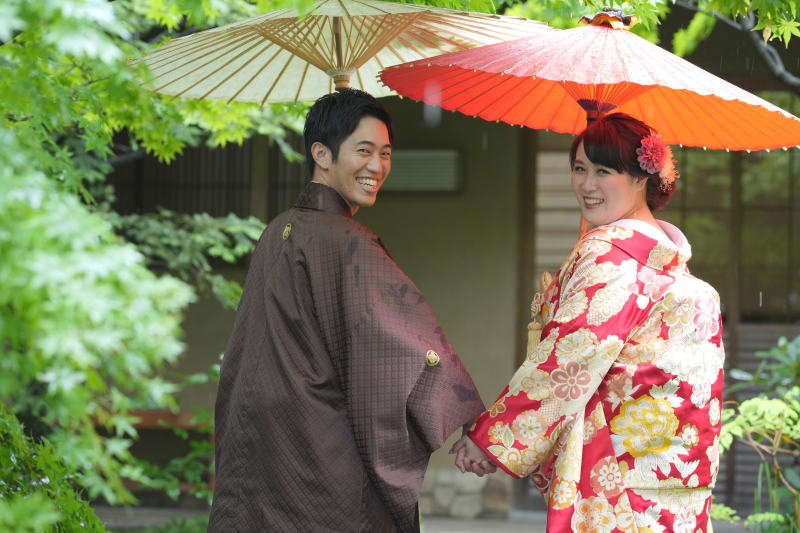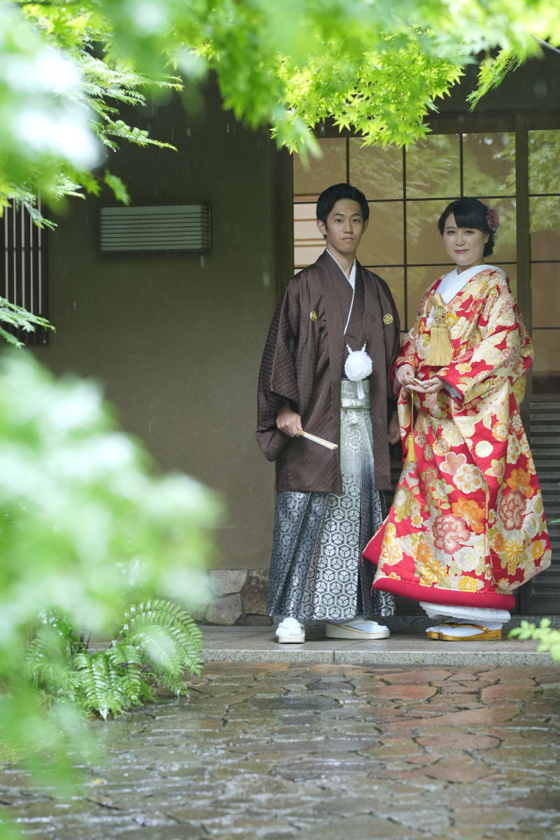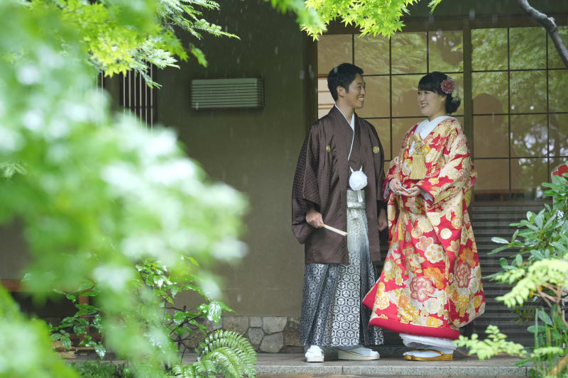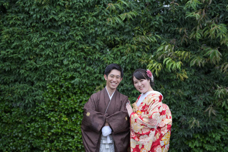 緑によく映える✨赤の色打掛×高級感あるブラウンの紋服!