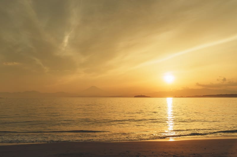 陽が沈んできたと同時に、うっすら富士山もお目見え!