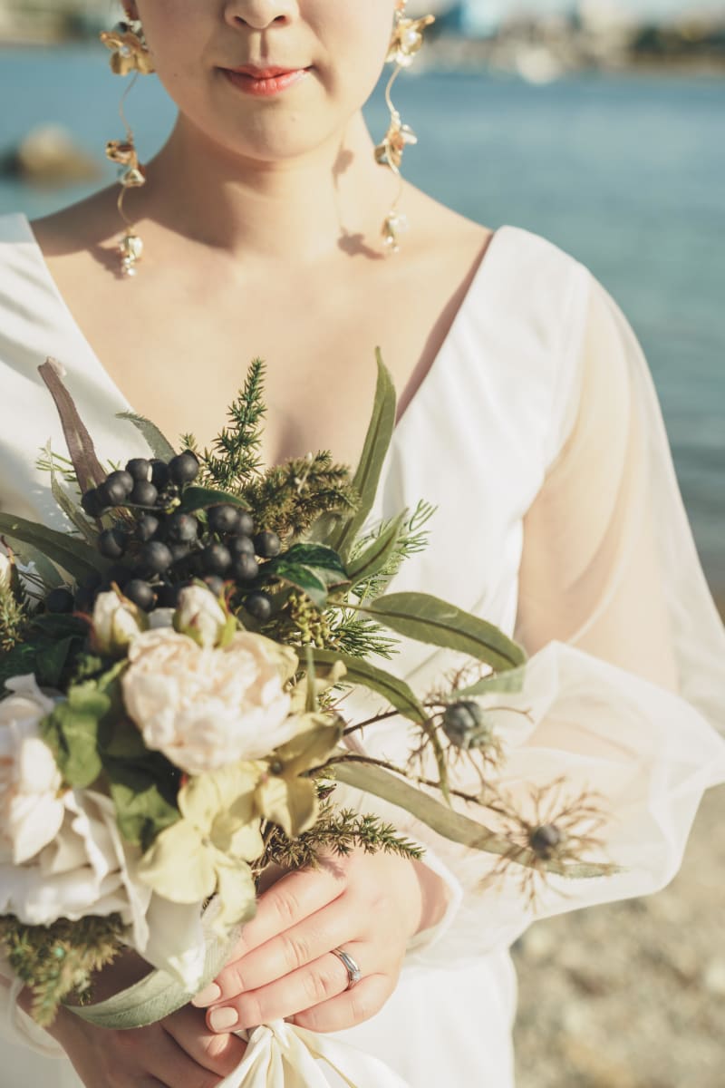 お持ち込みいただいたアクセサリーも、ブーケとのコーディネートも素敵でした◎