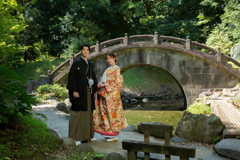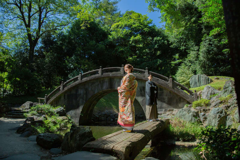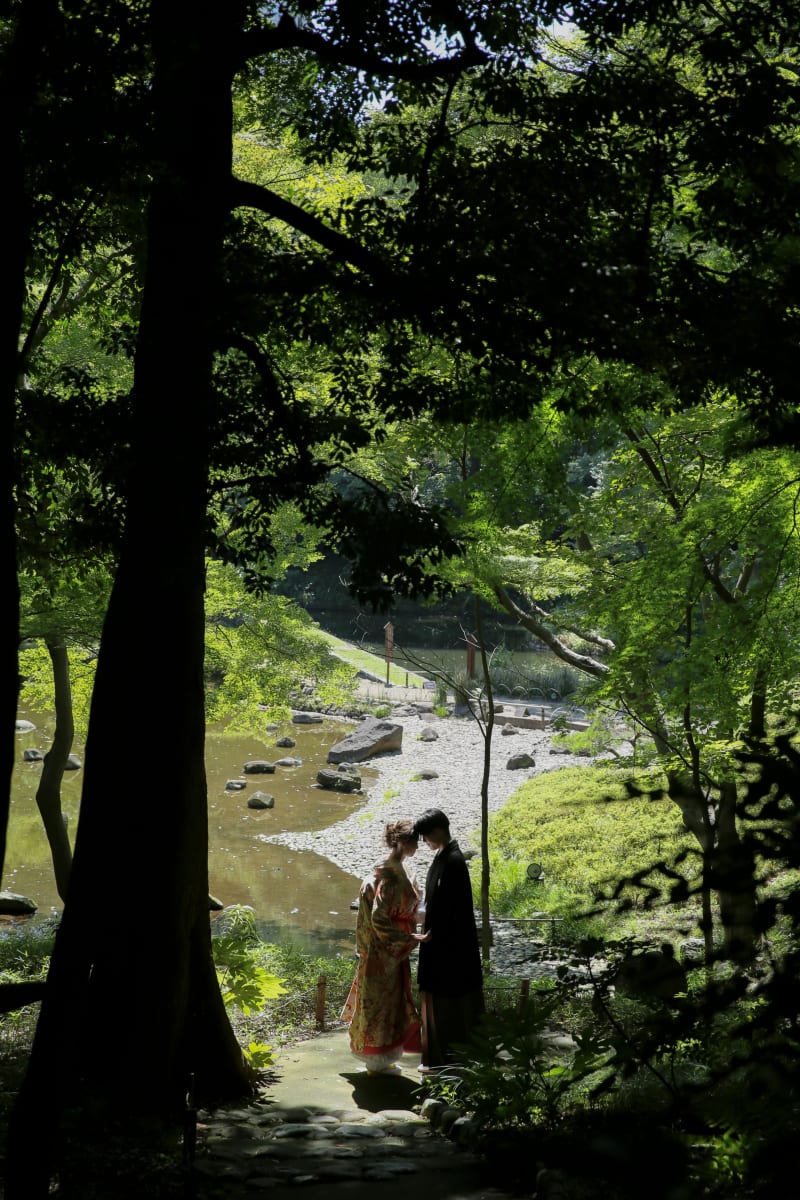 バードウォッチングの名所でもある「小石川後楽園」。新郎様は何か鳥を見つけたのかもしれません。