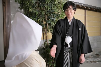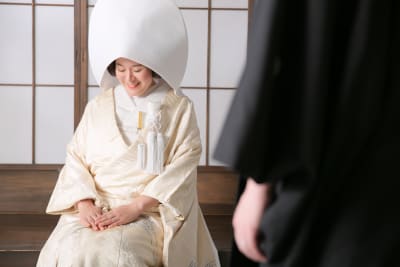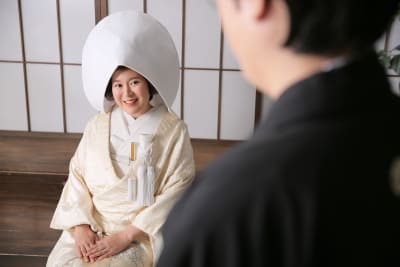 新宿店の本格的な茶室スタジオで撮影する、和装の結婚写真