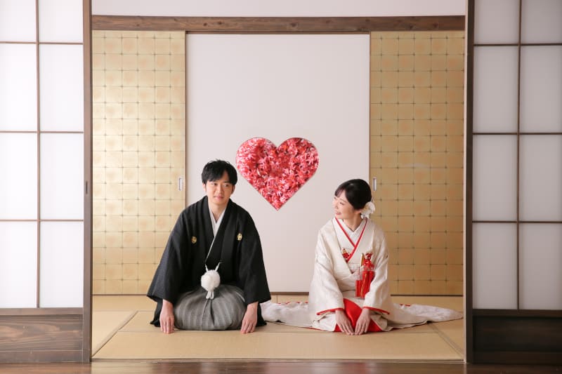 新宿店の本格的な茶室スタジオで撮影する、和装の結婚写真