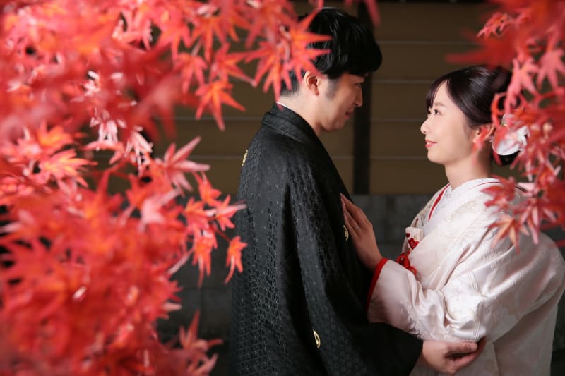 新宿店の本格的な茶室スタジオで撮影する、和装の結婚写真