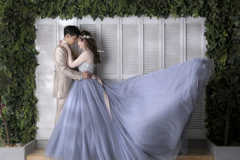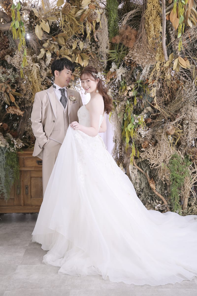 一面お花の壁が登場!新宿店ハウススタジオで撮影する洋装ウェディングフォトプラン